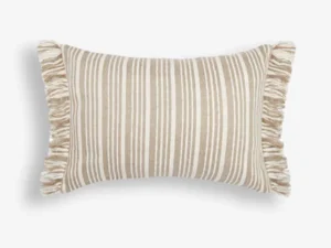 Large Lumbar Natural/Beige Stripe Fringed Cushion